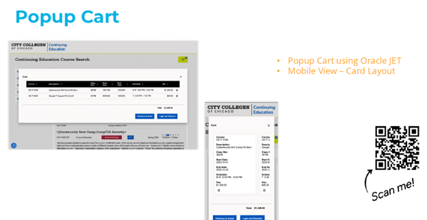 The cart itself is built with Oracle JET, providing: