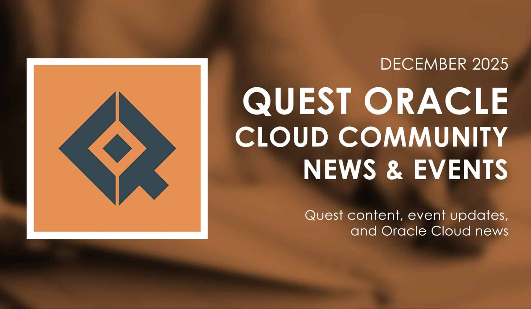 Save the dates for your 2026 Quest Oracle Cloud Community event lineup! These are your can’t miss opportunities to learn and network in the upcoming year: